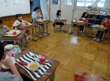 また、3くみとの交流給食で、輪になって会話を楽しみながら食べていました。