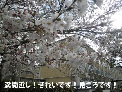 昨日の入学式を待っていたように,桜の花が開花しました。正門前の桜は,満開近しです。醍醐寺の桜には及びませんが,きれいです,見応えがあります。