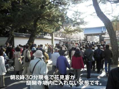 「豊太閤観櫻行列」(醍醐寺・花見踊り&行列)が行われる今日,醍醐寺付近は早朝から人・人・人!身動きも取れない状況です。