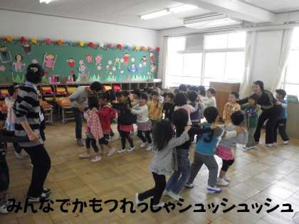 幼稚園や保育園で歌っていた歌を小学校バージョンの振付をして歌いました。
