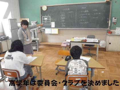 今日は,1時間目に低学年と高学年に分かれて取り組みました。低学年は大きな絵本の読み聞かせです。そして,高学年は,今年の委員会活動やクラブ活動を話し合いで決めました。