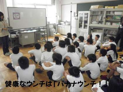 身体計測の前に,保健室の先生から健康チェックの「ウンチ」の話を聞きました。