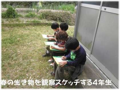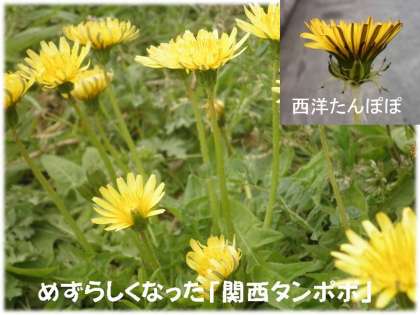 最近はめずらしくなった「関西たんぽぽ」が運動場周辺にいっぱい咲いています。