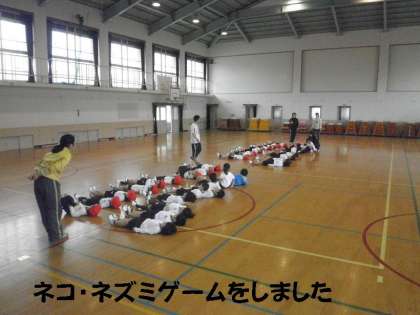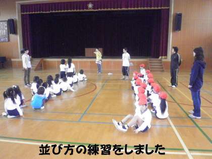 並び方の練習をして,そのあと,みんなでゲームをして体育館の中を走り回りました。
