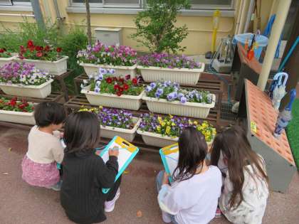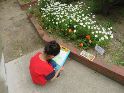 図画工作科で「おはなみスケッチ」の学習をしました。