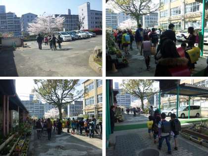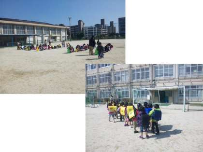 児童館に行く子どもたちは,児童館ごとに集まって集団下校をしました。