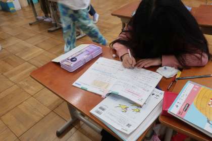 「35憶+28億」など、大きな数どうしの計算について、工夫して計算に挑んでいました。