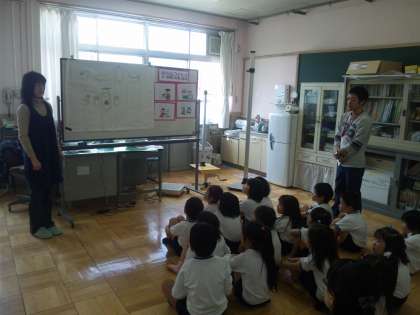 身体計測を行う前に,保健室の先生である大坂先生から,保健室のことやトイレの使い方などを分かりやすく教えていただきました。
