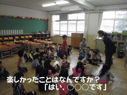 「はい,○○○が楽しかったです。」としっかり発表できました。