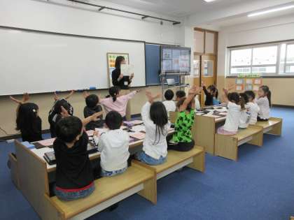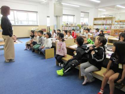 4月のある日、1年生は図書館の利用の仕方について教えてもらいました。
