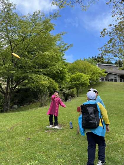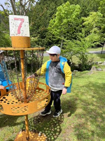 アスレチックができなかったのはとても残念そうでしたが、学校ではできないフライングディスクゴルフに大喜び!!