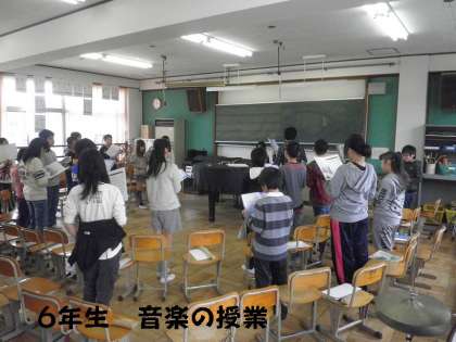音楽の授業は,立って歌うことが多いです。新し歌を楽譜を見ながら,先生のアドバイスを聞いて歌っていました。頭声を意識してがんばっていました。
