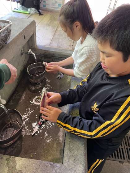 他の生き物の「命」をいただいて自分たちが生きていることを実感しながら、魚を捌いています。