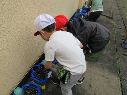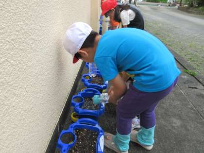 大きくなあれと心を込めてお水をあげる1年生でした!