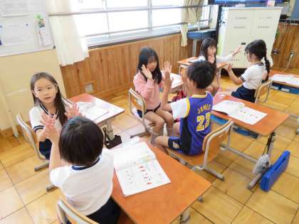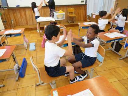 2拍や3拍のリズムを友達と一緒に手を叩きながら活動しました。