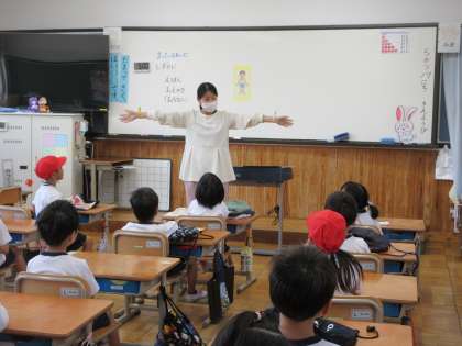 1年生は、心臓検診の受け方を教えてもらった後、落ち着いて検診を受けることができました。