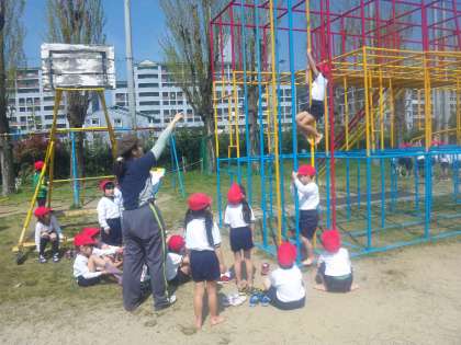 今日は,運動場ある遊具の使い方の勉強です。