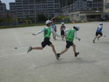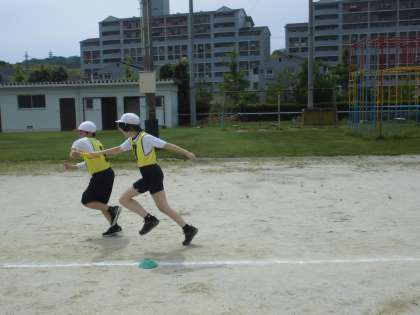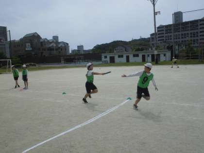 5年生は、体育の学習で「リレー」を行っています。