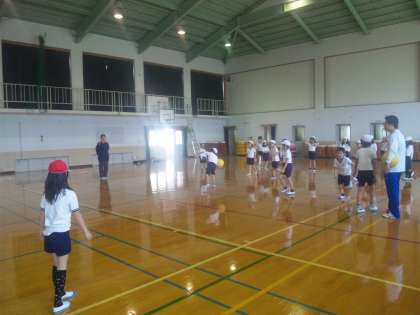元気のよい声を出して,みんな楽しそうに「ドッジボール」をしていました。