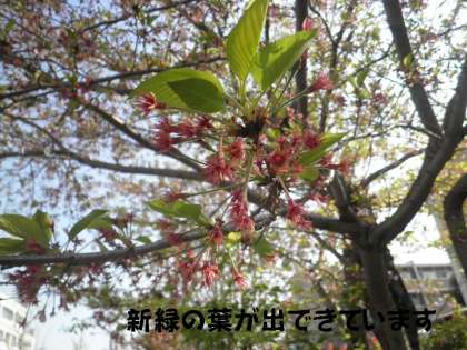 昨日に雨で,学校の桜もすっかり散ってしまいました。雨に打たれて鮮やかな新緑の葉がでてきています。