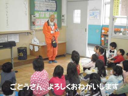 下校前に,スクールガードリーダーの後藤さんを,1年生の子どもたちに紹介しました。