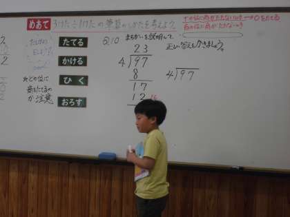 前に出て筆算の仕方を友だちに説明したり、練習問題に取り組んだりしました。