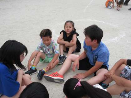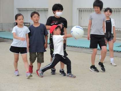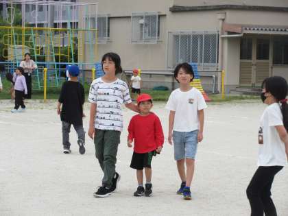 上級生に支えられ、楽しく安心して遊びに参加した1年生の子どもたち。