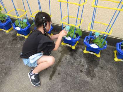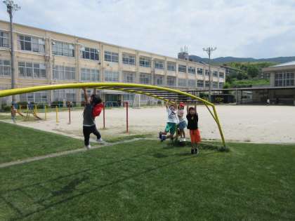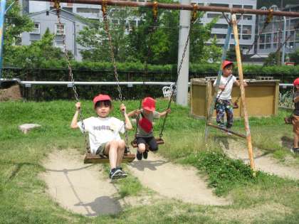 あさがおに水をやったり、ブランコに乗ったり、うんていをしたり。