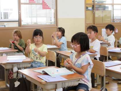 「しろくまのジェンカ」のリズムに合わせて、リズム打ちをしました。