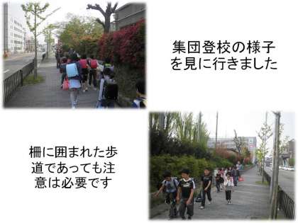 今朝は,教職員が各町を回って,集団登校の様子を確認しました。また,朝の会で事故防止のための登下校指導を再度しました。