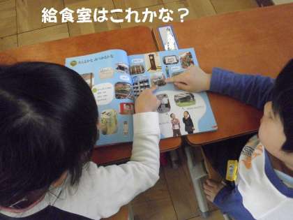 「たすの記号は,十字や!」「この写真は給食室や!」など,とても積極的に学習に取り組んでいる1年生です。