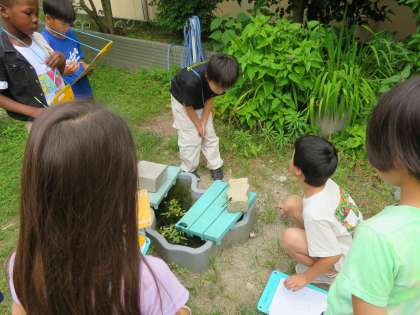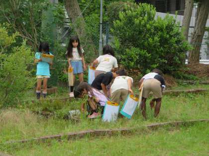 学校にはどんな生き物がいるのかをみんなで探しに行きました。
