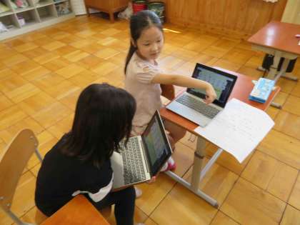GIGA端末を使って仲間分けをしたり、漢字を書いたりしました。