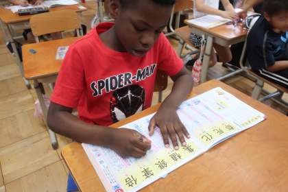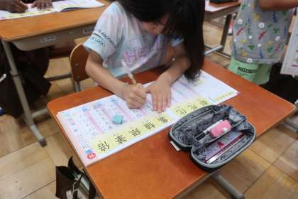 ドリルの手本を見ながら、一画一画力強く書いていました。
