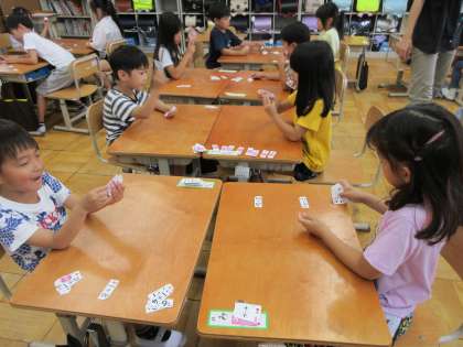 1年生は「たしざん」の計算カードを使って学習しています。