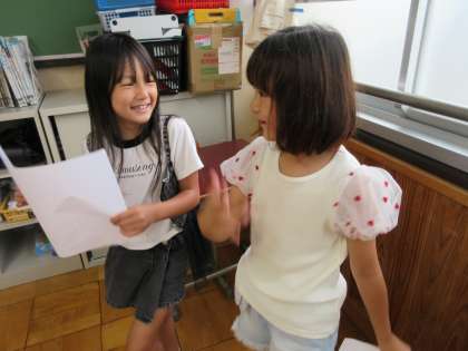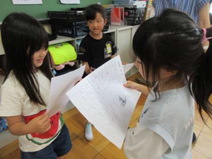 おもしろいと思ったことを書いて、友だちとペアで伝え合いました。