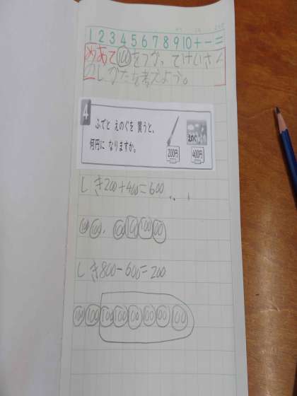 今日は200+400や800−600などの計算問題に挑戦しました。