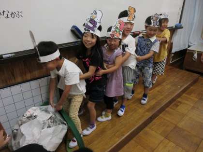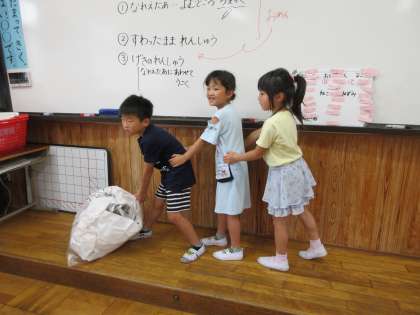 ナレーターに合わせて動いたり、教科書には無いセリフを考えて話したりしていて、明日の本番が楽しみです!