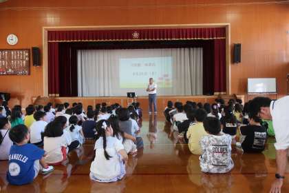 子どもたちは校長先生の方をしっかりと見て、集中して話を聞いていました。