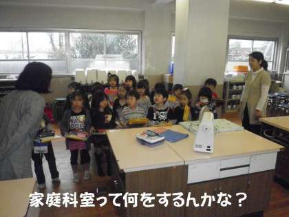 今日は,学校探検で初めて家庭科室に行きました。家庭課室は北校舎にあり,1年生の間は,町別集会など数回しか行きません。