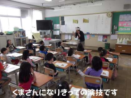 国語では,先生や子どもたちが登場人物になりきって,演技をしながら情景や気持変化を学習しています。