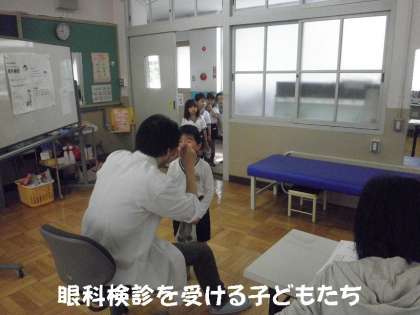 朝早くから,眼科の校医の先生に来ていただき,全学年の子どもたちを診ていただいています。