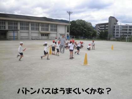 運動会に向けて「リレー」練習に入りました。低学年から中学年になり,バトンパスも正式な形で練習しています。