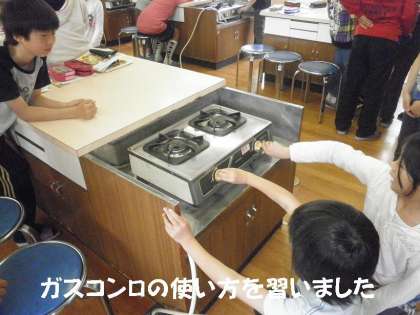 隣のクラスでは,家庭科の調理実習の前に,ガスコンロの使い方の学習をしました。