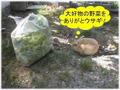 ある保護者の方が,いつもうさぎのえさ(キャベツなどの野菜)を定期的に持ってきていただいています。