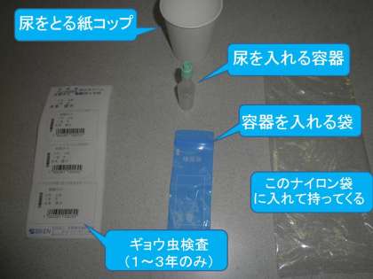 検尿は,全学年対象です。ギョウ虫検査は,1〜3年対象です。