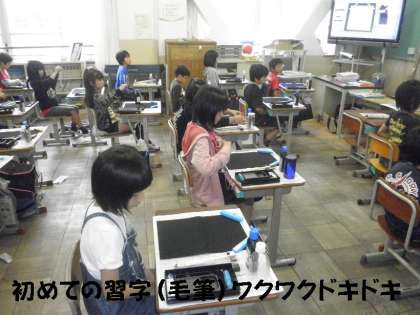3年生になって,新しく習字(毛筆)の時間が入ってきました。今日は,その第1回目です。