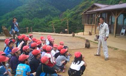 子どもたちは,岩田山を登りながらお猿を見つけると大きな歓声を上げて喜んでいます。