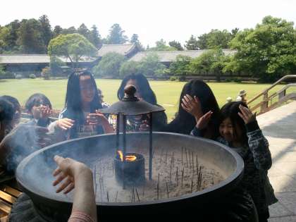 まず,煙を頭にかけて,『頭がよくなりますように』とお願いをしました。