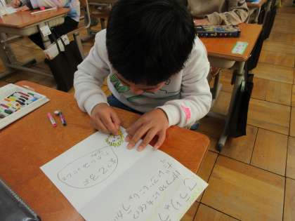 今日は、日にちや場所を知らせるために、一人一人が気持ちを込めて「招待状」を書きました。